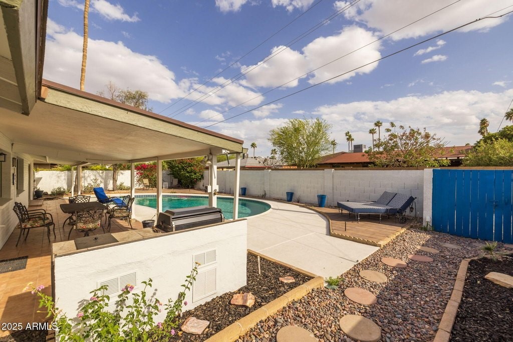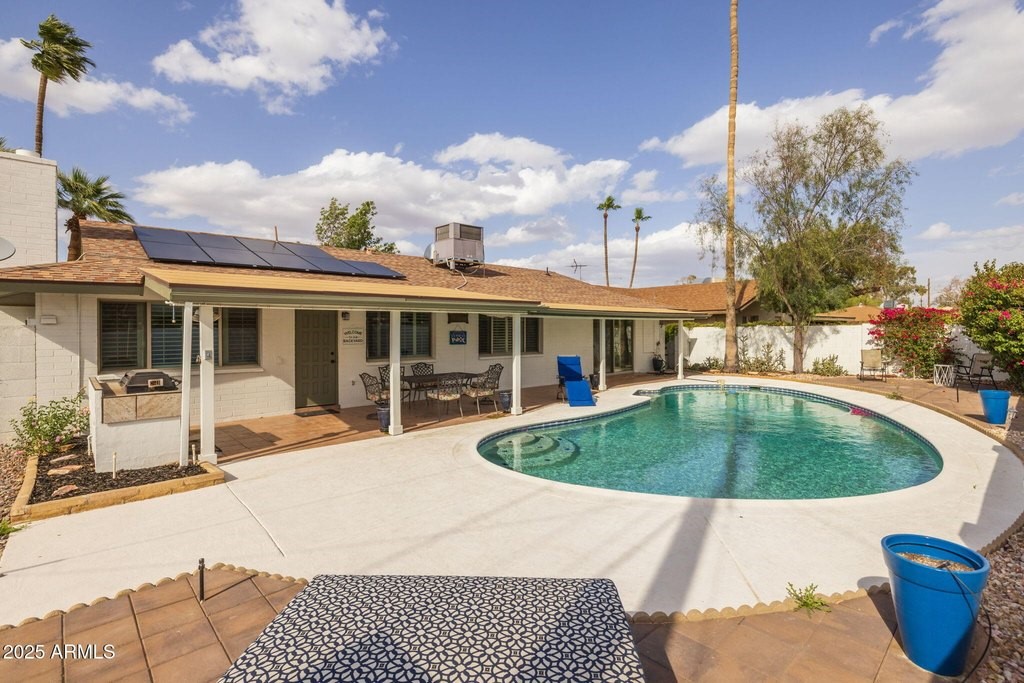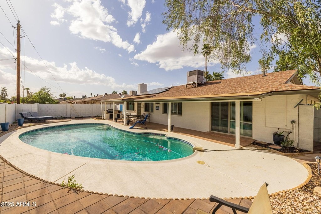 Welcome to this UPDATED 4-bedroom, 2-bathroom house, blending Style, Comfort, & practicality w/ OWNED SOLAR!! Enjoy modern upgrades to include a Gourmet Kitchen -High End GE Cafe Appliances & 36'' 6 Burner Stove, Granite Counters w/ Tasteful Cabinets! New flooring, LED recessed lighting, & Newer Interior & Ext. paint. Essential Updates (2022) water heater & Roof, Enhanced ductwork for optimal heating and cooling. (2024) Security is seamless with an ADT security system! The primary bedroom is your private oasis, with direct access to a refreshing Pebble Tech pool. The insulated 2-car garage offers ample protection for your vehicles, & the backyard is an entertainer's delight w/ misting system & heat-reducing deck. Washer and Dryer Included! Pest, Pool Service Included. Misc Upgrades to List: Wood Shutter Window Coverings, Dimming Switches, Upgraded electrical outlets, Newer Filter & Pool Pump, Automatic Sprinkler System, Misting System, Built In BBQ, Updated Electrical Panel (2022). Refrigerator, Local Conveniences includes, 4 miles to ASU, Easy Access to Major Highways 101, 202, I10 & I60. Banner Medical Center is also a few miles away. Many Restaurants & Entertainment, plus Spring Training fields for your Baseball Enthusiasts! Note: Furnishing May be included or can be removed! at another rate, please inquire 3/6/12Lease available for Furnished options